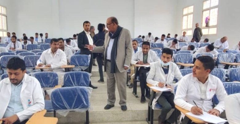 تدشين امتحانات الفصل الجامعي الأول لطلبة الدفعة الثالثة طب عام وجراحة بجامعة عمران