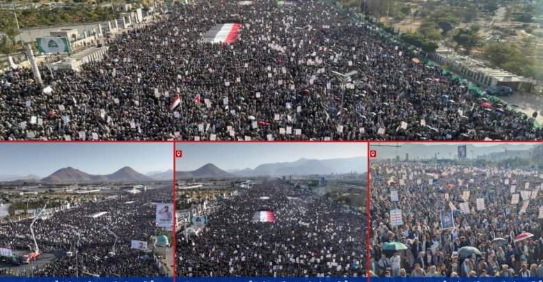 من صنعاء إلى الحديدة وتعز وريمة وبقية المحافظات الحرة، شكلت الحشود صورة حيّة لروح النضال اليمني وإرادة الشعب الصلبة، ولتلاحم المجتمع اليمني خلف قيادته الوطنية.. كانت الشوارع مليئة بالحشود، حاملين الأعلام الوطنية والفلسطينية، مرددين هتافات تؤكد تمسك اليمن بخيار المقاومة ورفض كل أشكال الاحتلال أو الوصاية.