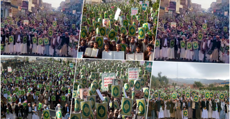 شهدت محافظة عمران، اليوم الجمعة، مسيرات جماهيرية حاشدة تحت شعار “نفير واستنفار.. نصرة للقرآن وفلسطين”، تنديدًا بحملات الإساءة المتكررة للقرآن الكريم، وتأكيدًا على الموقف الداعم للشعب الفلسطيني.