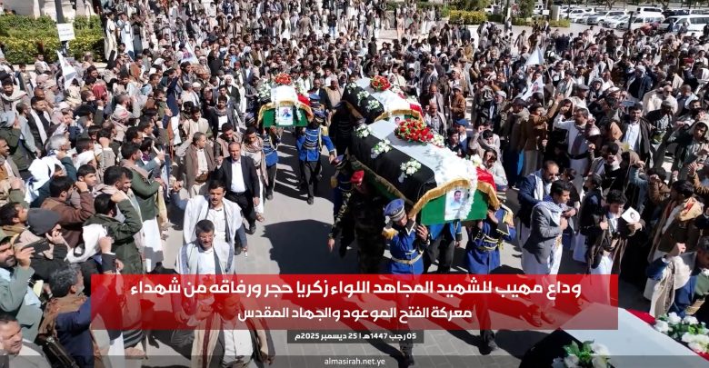 في يومٍ مشهود، ودّعت العاصمة صنعاء كوكبةً من الشهداء العظام الذين ارتقوا في الصفوف المتقدمة خلال معركة الفتح الموعود والجهاد المقدس، في موكب تشييع مهيب عكس عظمة التضحيات وصدق الانتماء.