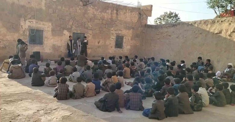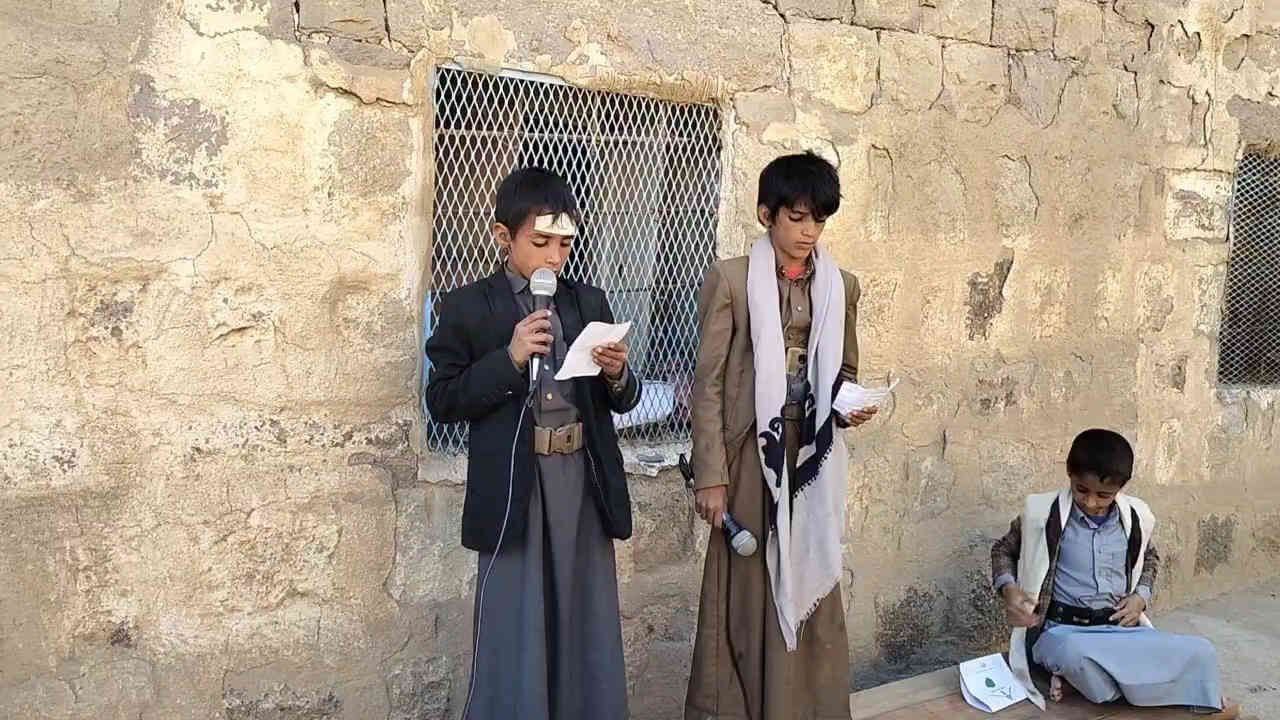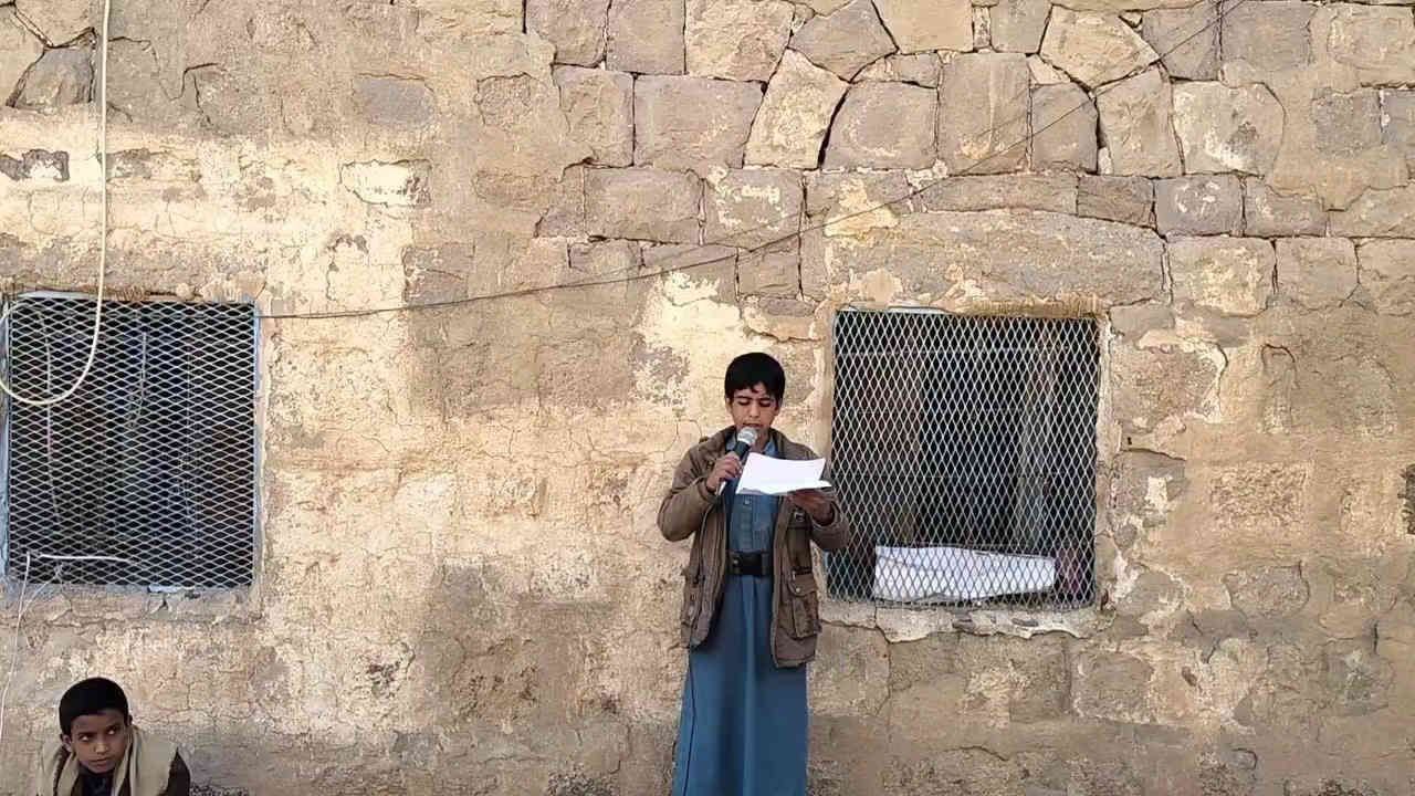 نظّم طلاب مدرسة الشهيد هاشم الغماري – لجيل القرآن بعزلة قاعة، مديرية العشة بمحافظة عمران، اليوم، فعالية خطابية تعبوية احتفاءً بعيد جمعة رجب وترسيخًا للهوية الإيمانية.