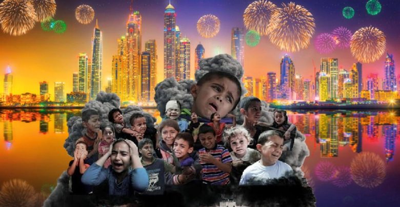 وأن تُضَخّ مئات الملايين في ليلةٍ واحدة للاحتفال؛ فيما لا يُضَخّ دولار واحد لإنقاذ طفل محاصر تحت الأنقاض، أرقام مفزعة؛ إذ قدّرت تقارير اقتصادية وسياحية غير رسمية أنّ تكلفة عروض الألعاب النارية الكبرى في مدينة واحدة مثل “دبي” وصلت إلى أكثر من 100 مليون دولار في ليلةٍ واحدة، وإجمالي الفعاليات المصاحبة لرأس السنة (أمن، تنظيم، درون، حفلات، ترويج سياحي) يتجاوز 150 مليون دولار في دولةٍ واحدة، أي إلى أكثر من ربع مليار دولار.