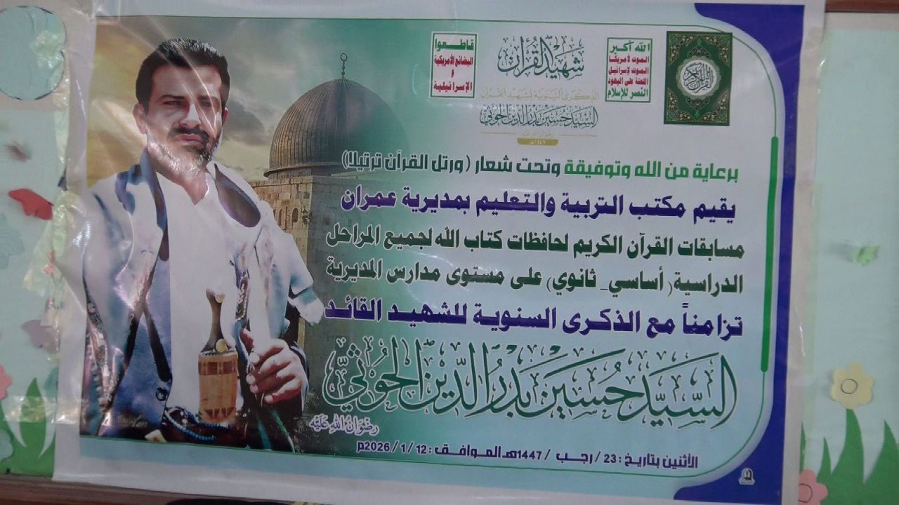 دشّنت بمديرية عمران اليوم مسابقات حفظ القرآن الكريم التي تنظمها إدارة التربية بالمديرية إحياءً للذكرى السنوية لشهيد القرآن السيد حسين بدر الدين الحوثي رضوان الله عليه، الذي أسس المشروع القرآني وأنقذ الأمة من التيه نتيجة التضليل والتدجين.