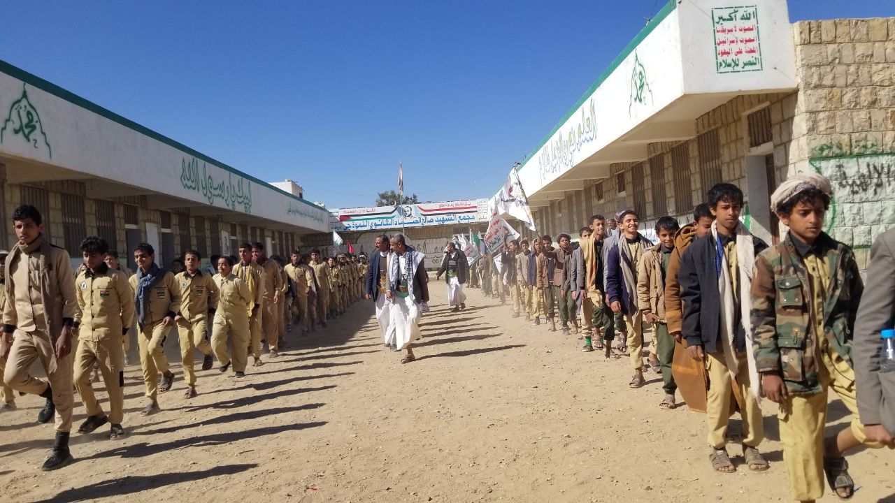 عمران – حوث: مسيرات راجلة لخريجي الدورات العسكرية المفتوحة إحياءً لذكرى شهيد القرآن