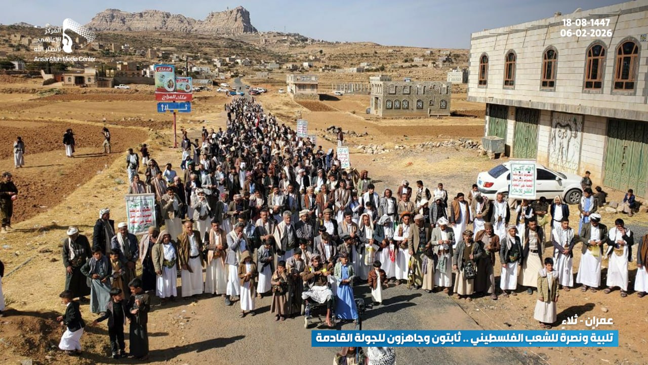 شهدت مديرية ثلاء بمحافظة عمران، اليوم، مسيرات جماهيرية حاشدة تلبيةً ونصرةً للشعب الفلسطيني، ورفضًا للعدوان الصهيوني المتواصل على قطاع غزة.