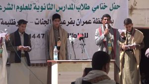 نظّمت المدارس الثانوية للعلوم الشرعية بمحافظة عمران بفرعيها مدرسة الجنات ومدرسة حبور ظليمة اليوم حفل تخرج الدفعة الثالثة من طلاب الثانوية الشرعية البالغ عددهم 207 طلاب واختتام العام الدراسي 1447هـ.
