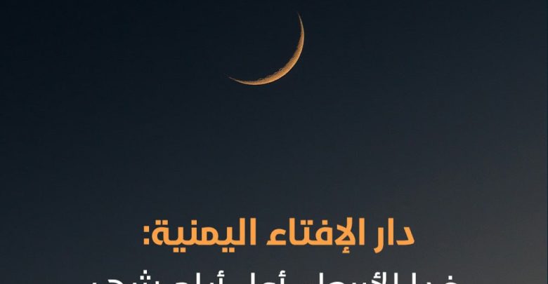 أعلنت دار الإفتاء بالجمهورية اليمنية أن يوم غدٍ الأربعاء الموافق 18 فبراير 2026م، هو أول أيام شهر رمضان المبارك 1447هـ.