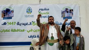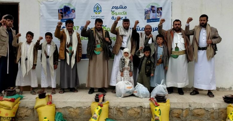 تدشين مشروع كسوة العيد والسلة الغذائية لأسر الشهداء والمفقودين في مديرية خارف بمحافظة عمران