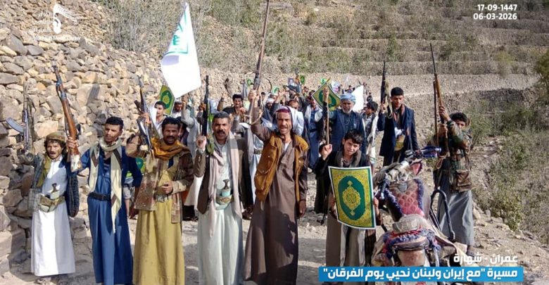 عشر مسيرات جماهيرية حاشدة في مديرية شهارة بعمران إحياءً ليوم الفرقان وتأكيداً للتضامن مع إيران ولبنان