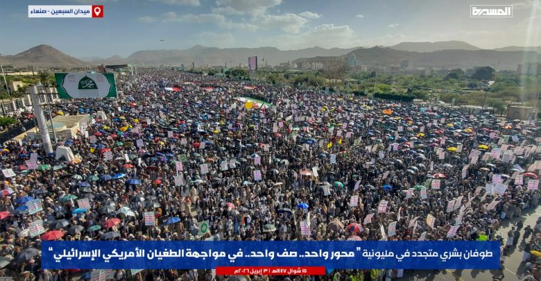 صنعاء تحتشد بالملايين تأكيدًا لوحدة الساحات ودعمًا لمحور المقاومة