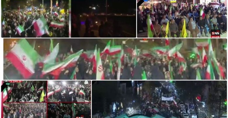 خرجت تظاهرات حاشدة مساء اليوم، في العاصمة الإيرانية طهران وعدد من المدن دعماً لنظام الجمهورية الإسلامية وقائد الثورة السيد المجتبى والقوات المسلحة ورفضاً للعدوان الأمريكي الإسرائيلي.
