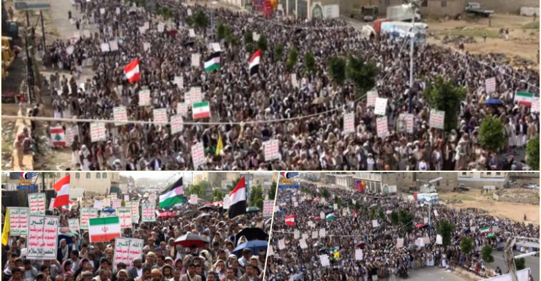 ورفعوا أعلام اليمن وفلسطين ولبنان وإيران والعراق، مؤكدين استمرار الموقف الثابت والمبدئي في نصرة الشعب الفلسطيني وكل قضايا الأمة، والتمسك بخيار مواجهة المشروع الصهيوني، وتعزيز معادلة الردع ووحدة الساحات.