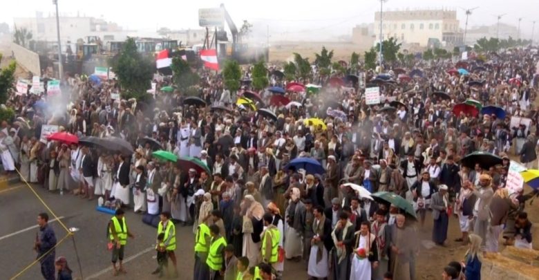 وأوضح بيان صادر عن مسيرات عمران، أن خروج الشعب اليمني اليوم يأتي تأكيدا على مواقفه الثابتة في مواجهة مخطط العدو الصهيوني المسمى بـ”إسرائيل الكبرى”، ومناصرةً لقضايا الأمة ومقدساتها وفي مقدمتها القضية الفلسطينية والمسجد الأقصى المبارك، ونصرة للأشقاء في لبنان وأبطال حزب الله، واستعداداً لكل التطورات المحتملة في مواجهة الأعداء.