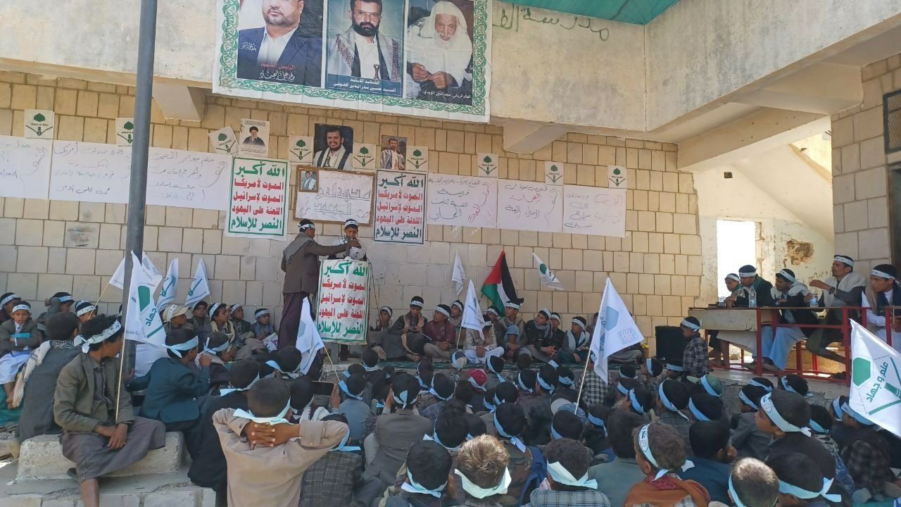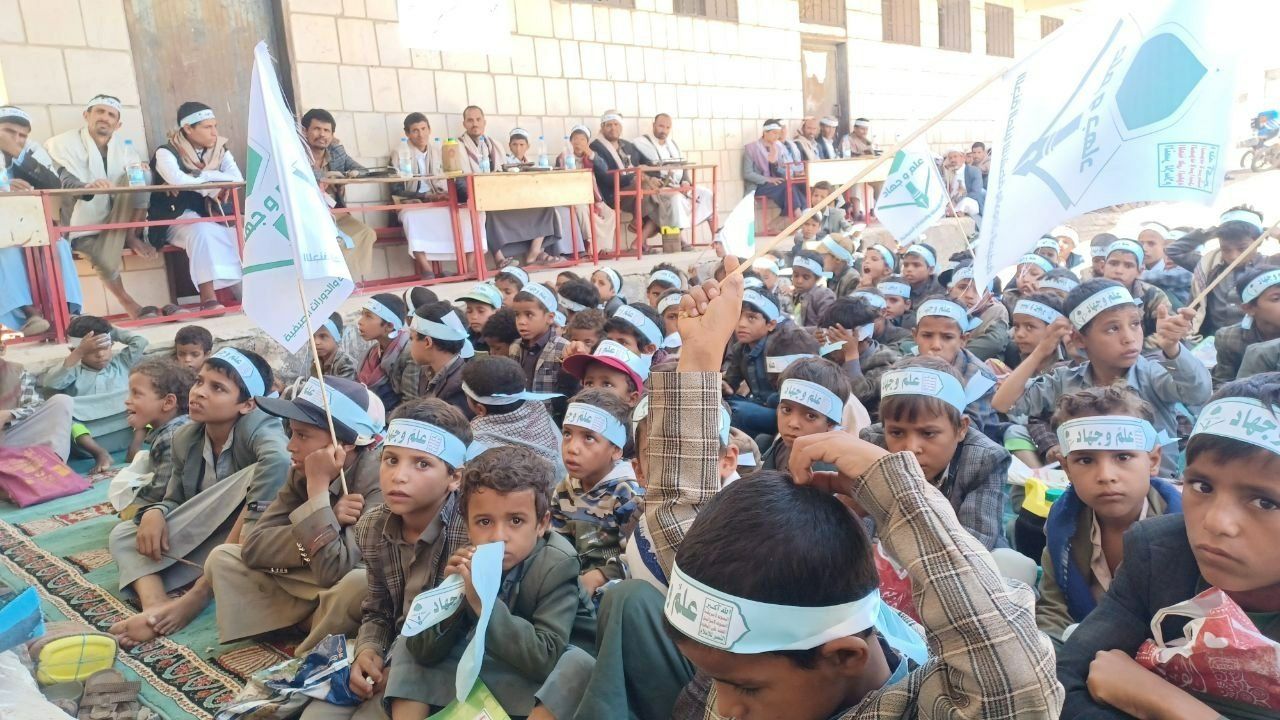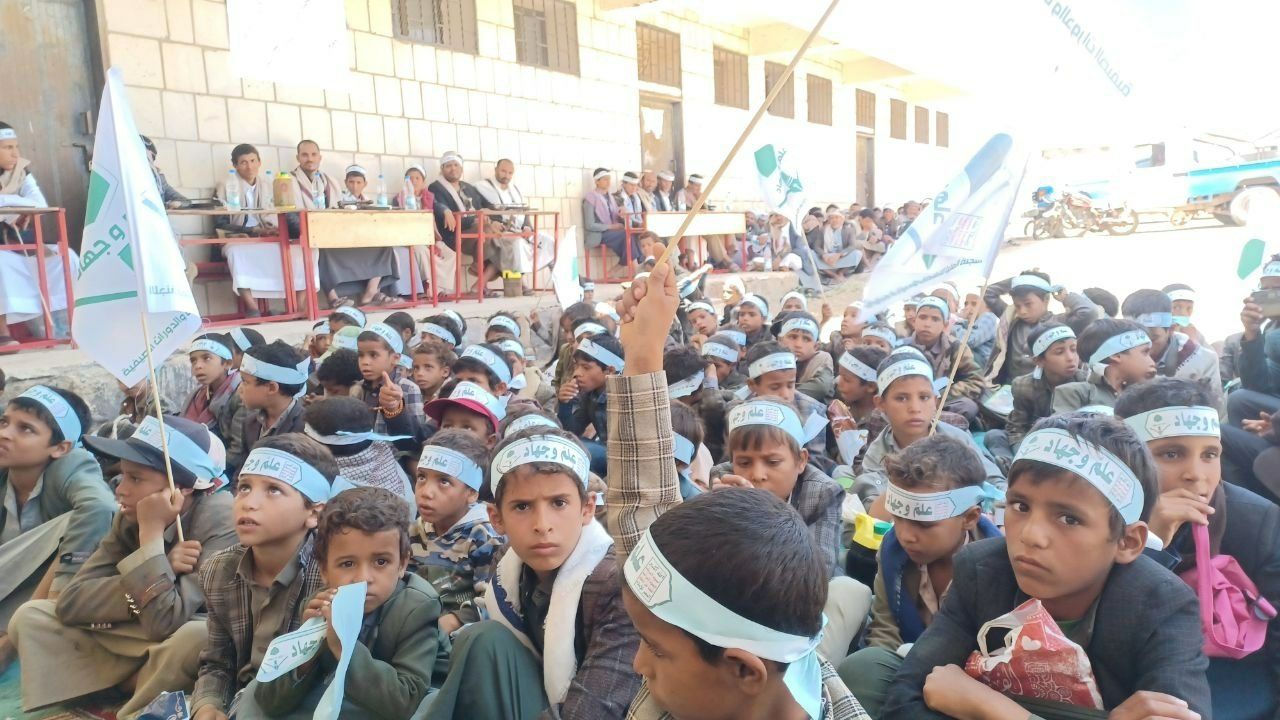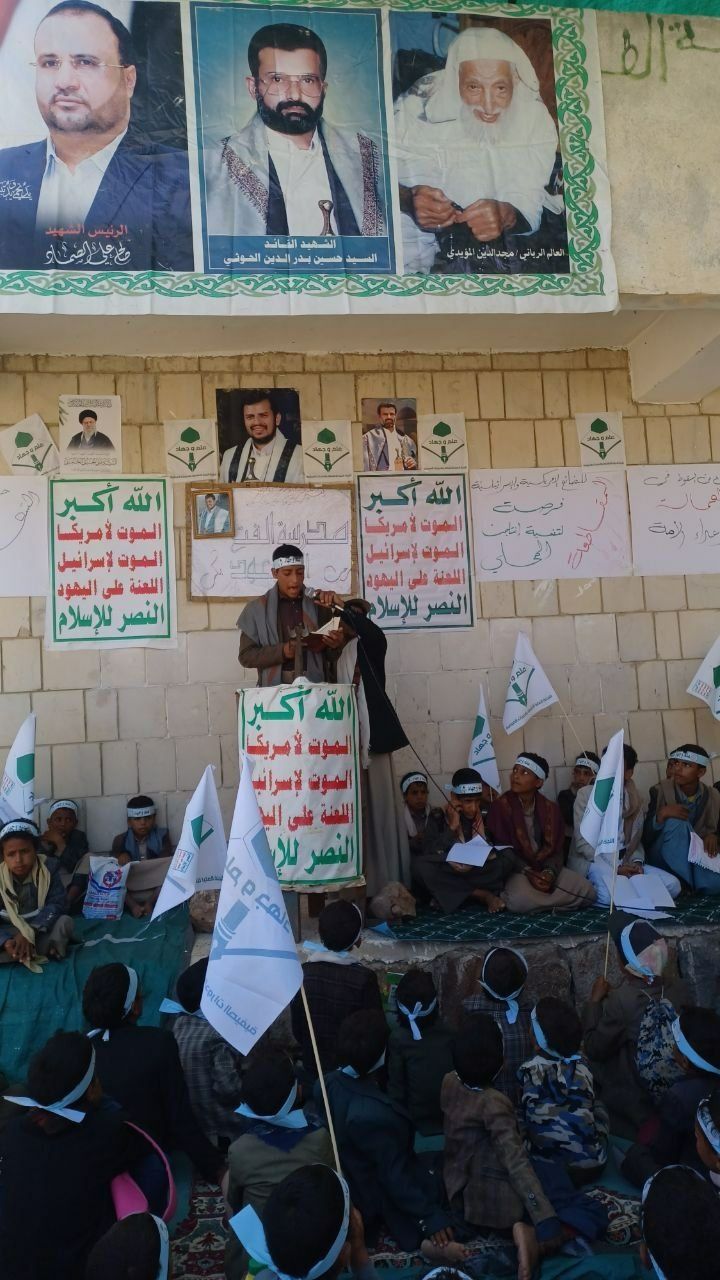 نظّم طلاب ومعلمو مدرسة الفوز النموذجية للدورات الصيفية بشرقي عزلة ذري بمديرية شهارة بمحافظة عمران فعالية تعبوية وثقافية إحياءً للذكرى السنوية للصرخة في وجه المستكبرين تحت شعار الشعار سلاح وموقف.