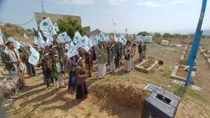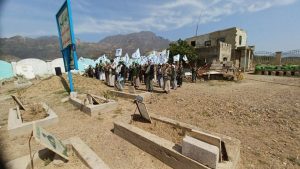 وتوقف المشاركون في المسير بروضة الشهداء بالمديرية حيث وقفوا صفاً واحداً لقراءة دعاء الزيارة وسورتي الفاتحة والإخلاص ترحماً على أرواح الشهداء كما جرى المرور بين الأضرحة لاستلهام دروس البذل والعطاء وتجديد العهد والوفاء للقيم والمبادئ التي ضحّى من أجلها الشهداء.