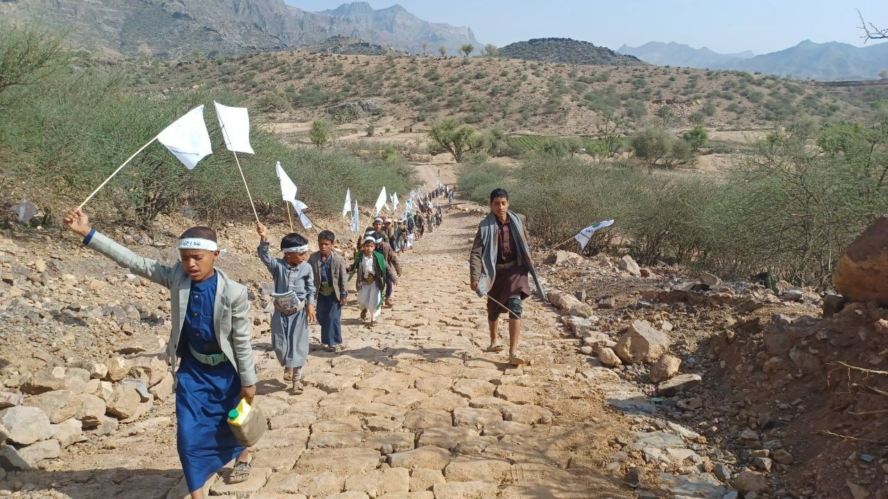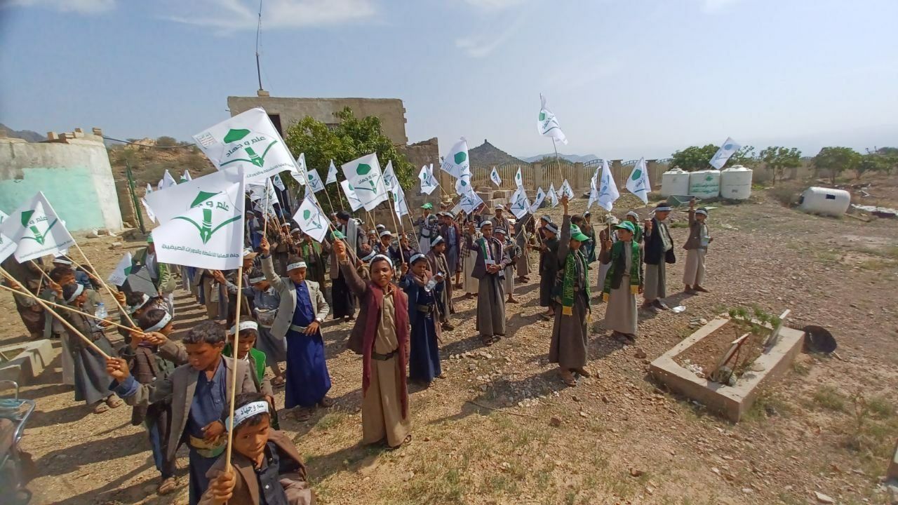 نظّمت اللجنة الفرعية للأنشطة والدورات الصيفية في مديرية شهارة بمحافظة عمران اليوم مسيراً راجلاً لطلاب الدورات الصيفية بمدرسة الفتح الموعود النموذجية بالكريش المربع الشرقي بعزلة ذري إحياءً للذكرى السنوية للصرخة وتضامناً مع أطفال محور الجهاد والمقاومة تحت شعار علم وجهاد.