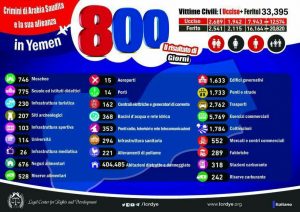 عمران نت إحصائية 800 يوم من جرائم العدوان السعودي الأمريكي في اليمن بعشر لغات عالمية. إصدار المركز القانوني للحقوق والتنمية.