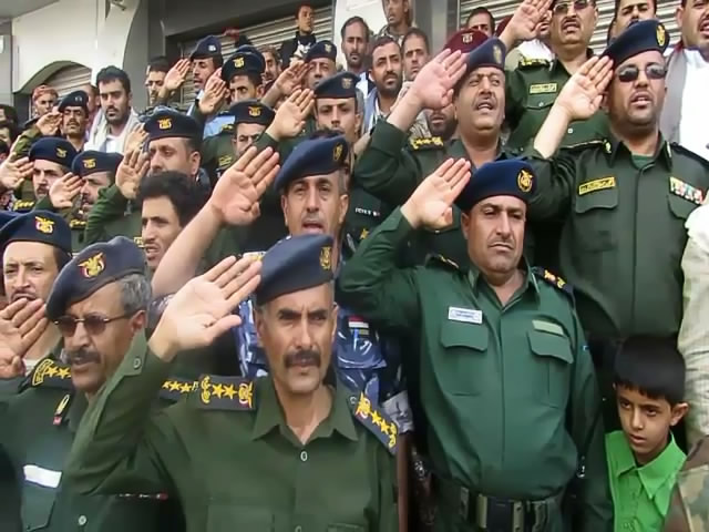 وأكد المشاركون في العرض العسكري لوحدات من الأمن المركزي واللواء التاسع والنجدة والامن العام والشرطة العسكرية واللجان الشعبية الاستعداد والجاهزية للدفاع عن الوطن والأرض والعرض واستمرارهم في رفد الجبهات بالمال والرجال لمواجهة العدوان السعودي الأمريكي والتضامن مع الأقصى الشريف الذي يتعرض لاعتداءات من قبل المحتلين الصهاينة.