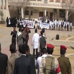 شاهد بالصور..عمران: الوقفة الاحتجاجية لدكاترة وطلاب المعهد العالي للعلوم الصحية بمحافظة عمران