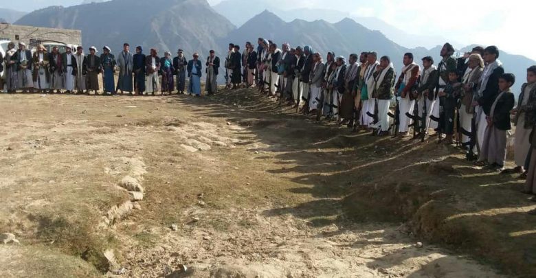 نظم ابناء ومشائخ وعقال عزلة بني عشب بمديرية كحلان عفار بمحافظة حجة، اليوم، وقفة احتجاجية مسلحة تأييدا لوثيقة الشرف القبلية وتنديدا باستمرار جرائم العدوان الأمريكي السعودي الإماراتي بحق ابناء الشعب اليمني.