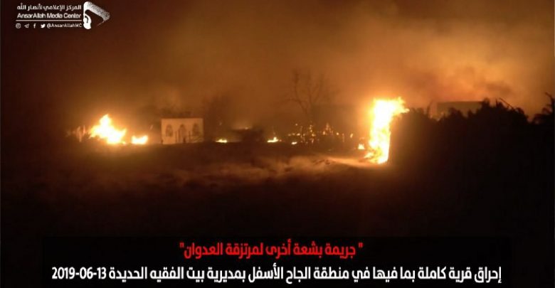 مأساة وبؤس ومعاناة، وجريمة وحشية تتجدد في يمن الإيمان والحكمة حيث قام مرتزقة العدوان على احراق قرية كاملة في بيت الفقية بالحديدة، لا لجرم فعلوه إلا أنهم أبّو أن يركعوا إلا لله العزيز الحميد، هذه الجريمة البشعة التي يتجاهلها العالم هي جريمة إبادة لليمنيين بما تعنية الكلمة، ماذا لو كنا يهود ألم يكن العالم بأكمله سيحرك قواته لإنقاذنا؟!