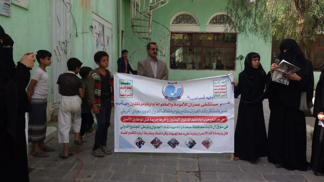 اقيمت اليوم في محافظة عمران وقفة احتجاجية في مستشفى عمران للأمومة والطفولة إدارة وموظفي المستشفى وقفة