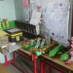 والطائرات المسيرة وعلى رسومات معبرة للطلاب والطالبات وأعمال يدوية وتحف جميلة صنعتها طالبات المركز.