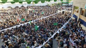 ونوه بالجهود الكبيرة التي بذلت من كل من أسهم وشارك وأعد وحضر هذا المهرجان الحاشد الذي يبعث بالفخرو الإعتزاز لأبناء مديرية جبل يزيد ضيوف ومحبي رسول الله صلى الله عليه وعلى آله