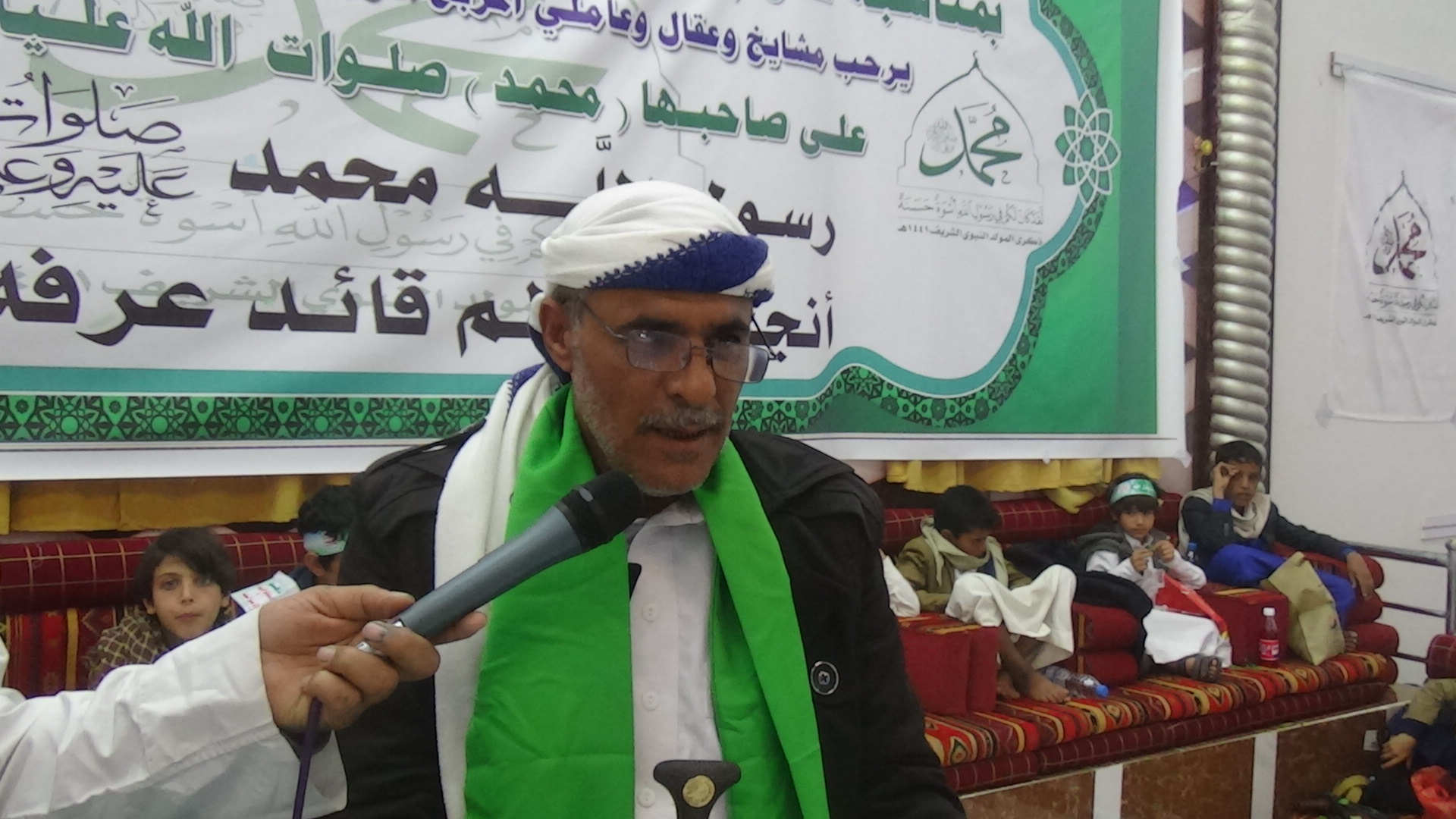 وفى الأمسية التي حضرها محافظ المحافظة الدكتور فيصل جعمان ومشرف عام مديرية عمران نبيه أبو شوصاء ونائب مشرف عام المديرية الشيخ عبد الله زيد الضلعي والشيخ احمد هاشم الطيب وعضو لجنة الانضاف ابو طة الغمارى والمشرف الاجتماعي بالمديرية أبو محمد ألمؤيدي ومشرف المربع الاول ابو كريم العمراني ، القي أبو كريم كلمة رحب فيها بضيوف الرسول الأكرم واستعرض جانباً من سيرة الرسول الأعظم محمد صلى الله عليه وسلم وأهمية الإقتداء به والسير على نهجه لإعلاء كلمة الله ، داعياً إلى التفاعل مع هذه المناسبة وإحيائها بما يسهم في توثيق علاقة الأمة برسولها الكريم .