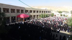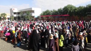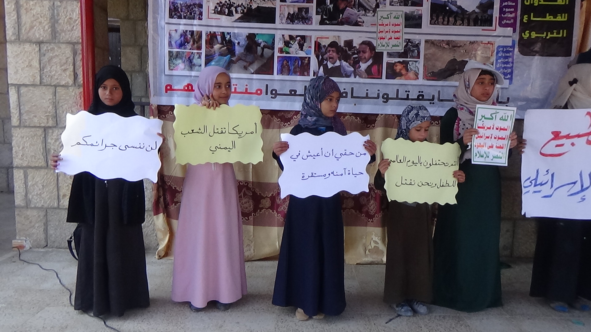 تزامناً مع مرور اليوم العالمي للطفل نددت طالبات مدرسة أسماء الأساسية والثانوية للبنات بمديرية عمران اليوم خلال وقفة احتجاجية لجرائم العدوان السعودي الامريكي الصهيوني
