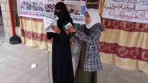 ورددت المشاركات شعارات منددة بالجرائم التي ارتكبها طيران العدوان بحق أطفال اليمن.