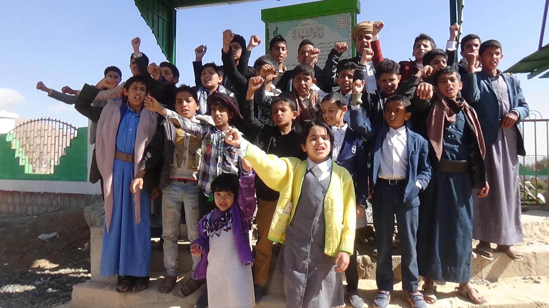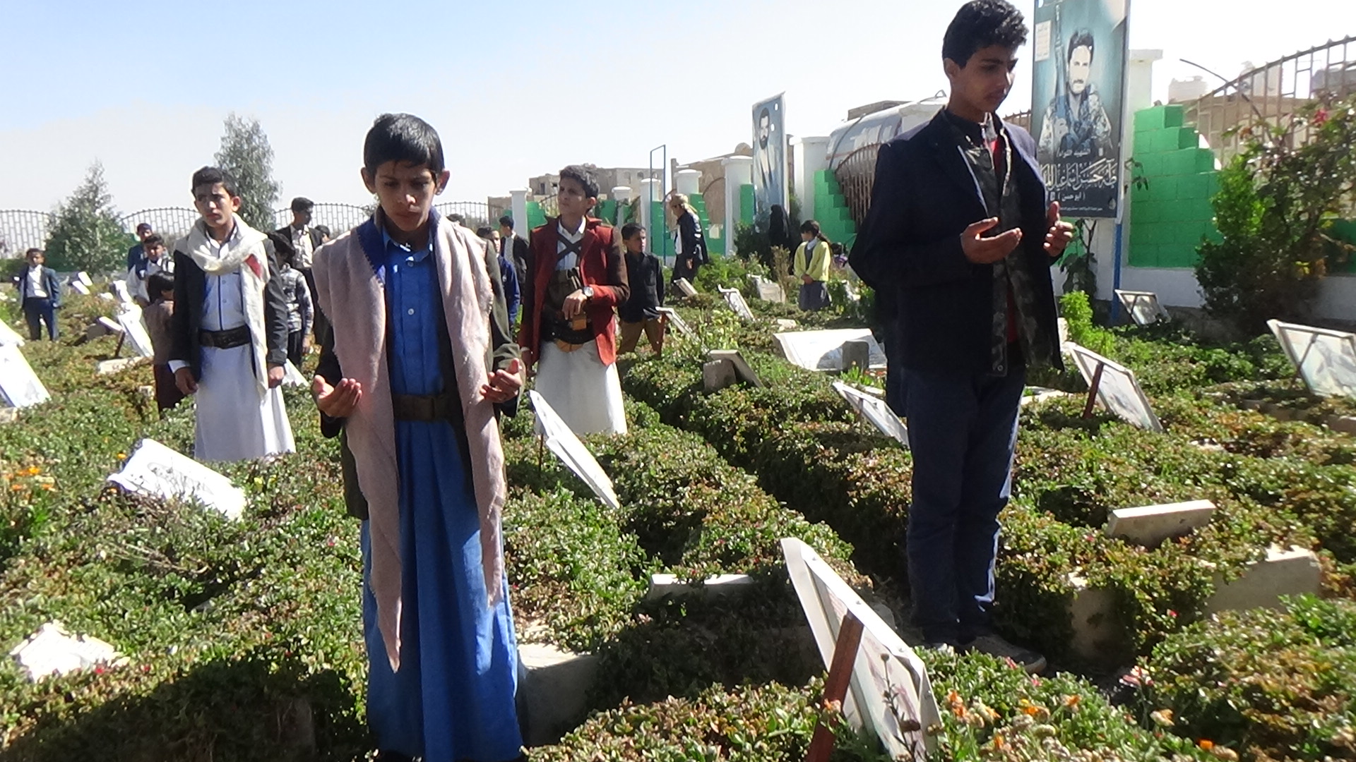 رفع أبناء الشهداء صور شهدائهم بكل عزةً وفخرٍ وإباء معاهدين شهدائهم أنهم على نهجهم ماضون ودربهم سائرون حتى يطهرون الأرض من دنس الغزاة والمرتزقة .