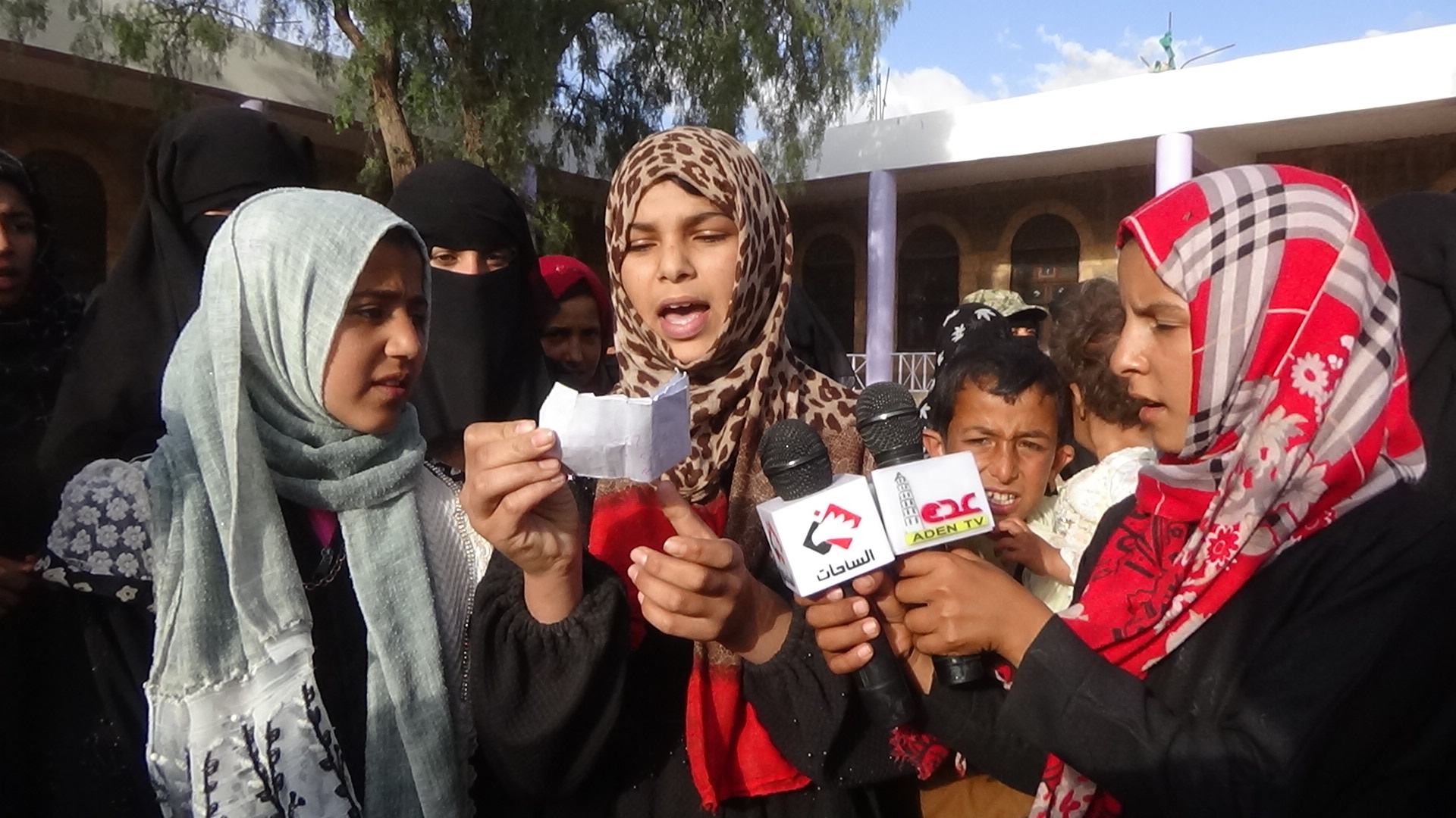 وأثناء تقديم القافلة نظمت الحاضرات وقفة احتجاجية تنديدا بجرائم العدوان السعودي الأمريكي بحق أبناء الشعب اليمني ، وتأكيدا على مواصلة الصمود في وجهه العدوان