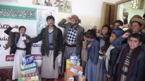 بالذكرى السنوية للشهيد سيرًت أسرة وأقارب الشهيد حمود حمود يحيى القحوم بمديرية ريده محافظة عمران اليوم قافلة غذائية للجيش واللجان الشعبية المرابطين بجبهة الساحل الغربي.