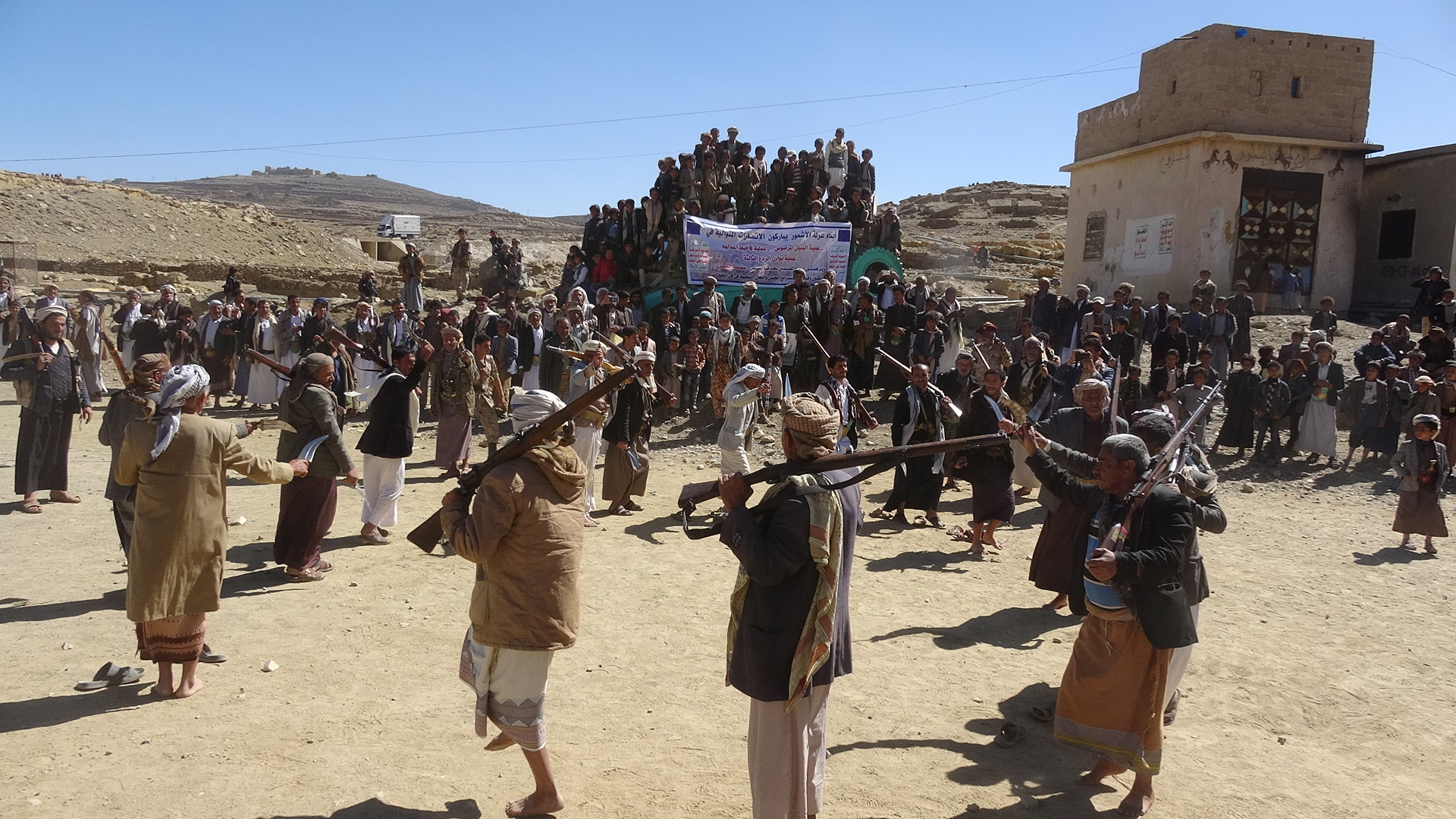 وقفة قبلية مسلحة لأبناء قبيلة الاشمور بعمران رافضة بيع القدس ومباركة الانتصارات العظيمة