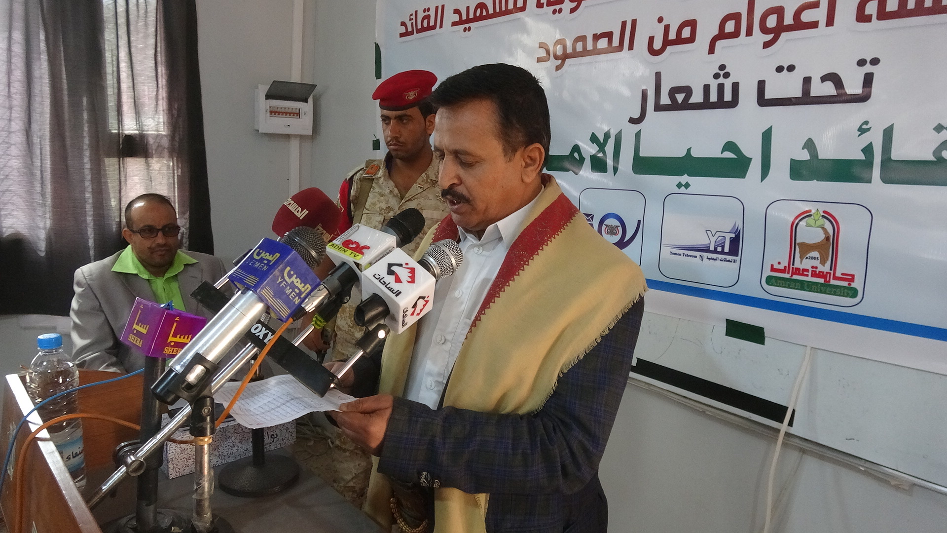 نظم كل من جامعة عمران – والمؤسسة العامة للاتصالات – والهيئة العامة للبريد بمحافظة عمران فعالية خطابية بمناسبة الذكرى السنوية للشهيد القائد حسين بدر الدين الحوثي ومرور خمسة أعوام من الصمود