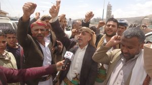 وخلال الوقفة أعلن وجهاء وأبناء المديرية عن تسيير قافلة غذائية دعما للجيش واللجان الشعبية في الجبهات.