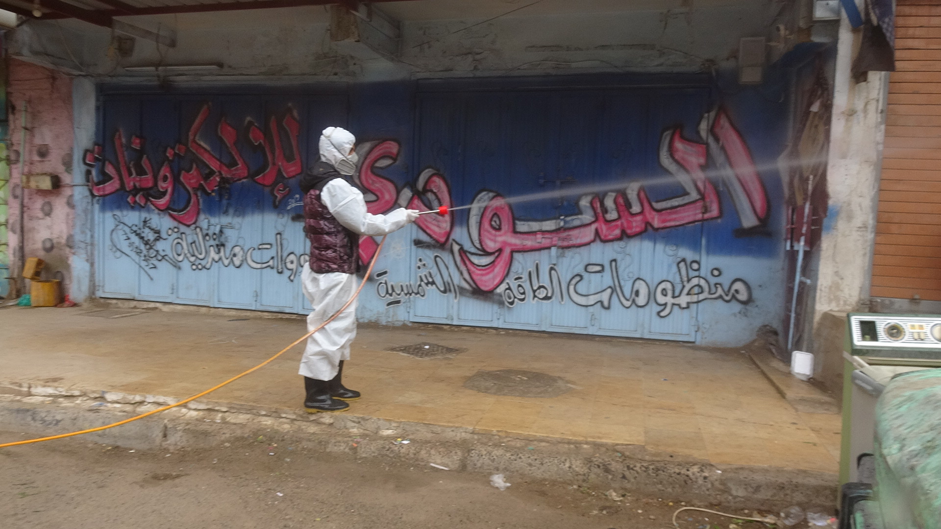 برعاية وزارة الداخلية والدفاع المدنى دشن فجر اليوم عملية رش كافة المباني الحكومية والأمنية والتجمعات السكانية بمحافظة عمران .
