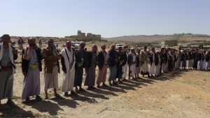 أقيمت اليوم الخميس وقفة احتجاجية لقبيلتي الميقاع والغيل بمديرية خمر محافظة عمران تنديداً وإستنكاراً لماتقوم به دويلة الإمارات من عمالة وتطبيع مع العدو الصهيوني وبيع لقضايا الأمة الكبرى كالقضية الفلسطينية