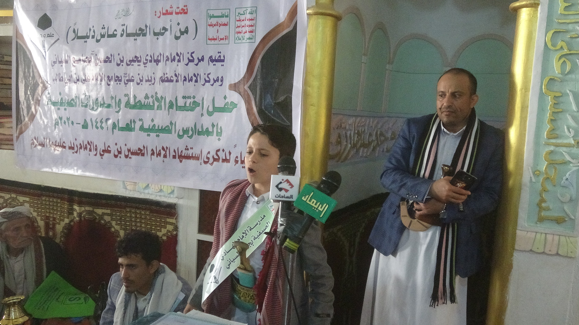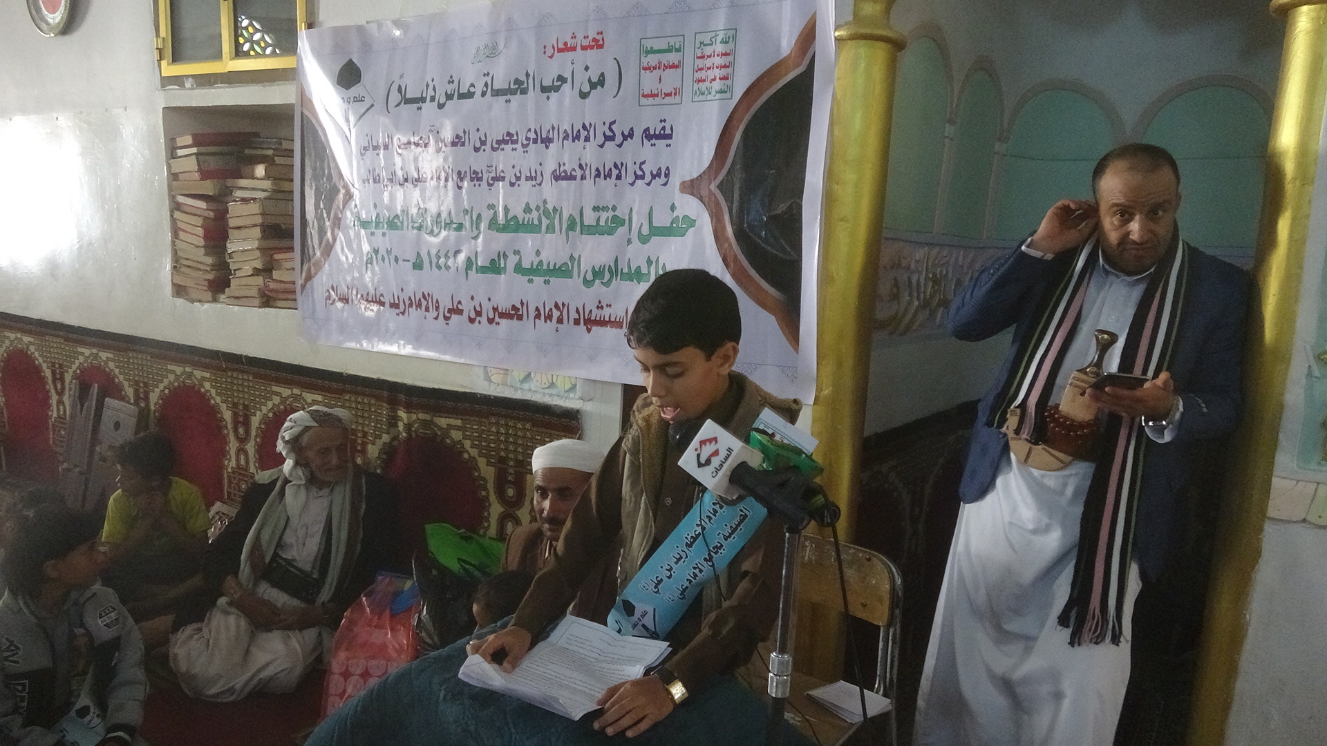 أقامت مدرسة الإمام الهادي يحيى بن الحسين بجامع السياني ومدرسة الإمام الأعظم زيد بن علي بجامع الإمام علي بن أبي طالب عليهما السلام بمديرية عمران حفل إختتام الأنشطة والدورات الصيفية بالمدارس الصيفية للعام 1441 هـ 2020 م .وإحياءً لذكرى إستشهاد الإمام الحسين بن علي والإمام زيد عليهما السلام .