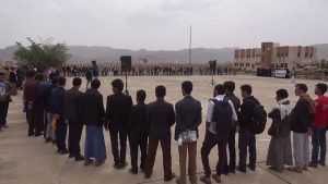 نظم طلاب واكاديمي كلية الهندسة والعلوم التطبيقية وملتقى الطالب الجامعي بجامعة عمران وقفة حدادا وتضامنا مع ، الدكتور “محمد نعيم”، عميد كلية الهندسة بجامعه عمران سابقا و الذي اغتالته ايادي الغدر والخيانة التابعة للعدوان.