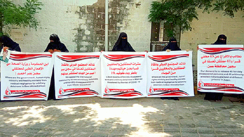 وقالت الرابطة إن المختطفين والمعتقلين تعسفا والمخفيين قسرا داخل سجون عدن يعانون من تدهور شديد في صحتهم ويشكون من ضيق التنفس وحمى وآلام المفاصل وفقد حاستي الشم والطعم ويزداد وضعهم سوءا يوما بعد آخر مع انتشار وباء كورونا.