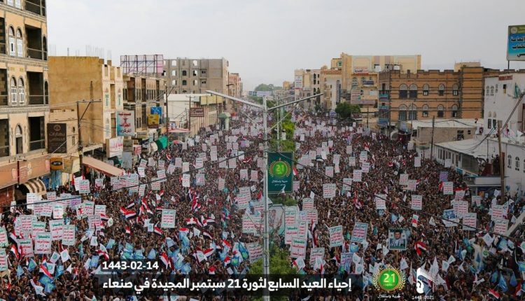 شهدت العاصمة صنعاء، عصر اليوم الثلاثاء، مسيرة كبرى شارك فيها مختلف مكونات الشعب اليمني، احتفاء بالعديد السابع لثورة الـ 21 من سبتمبر المجيدة.