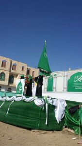 واشارت الفعالية الى ان شعبنا اليمني يحتفل بهذة المناسبة اليوم وكما في الاعوام الماضية بكل محبة واعزاز وتقديس وتعظيم وتوقير لخاتم الأنبياء وعرفانا بالنعمة وشكرا لله واحتفاء برسوله الكريم.