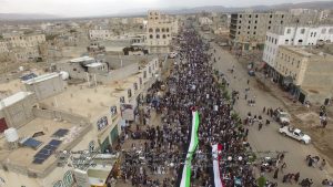احتشد الآلاف من أبناء محافظة عمران اليوم الجمعة في مسيرة جماهيرية حاشدة لإحياء يوم القدس العالمي تحت شعار “القُدس هي المحور”.