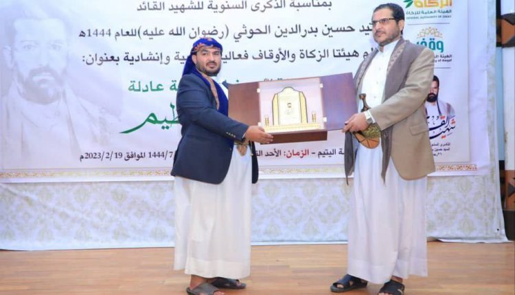 نظمت هيئتا الزكاة والأوقاف اليوم، فعالية خطابية بالذكرى السنوية للشهيد القائد بعنوان “الشهيد القائد عنوان قضية ورائد مشروع عظيم”.
