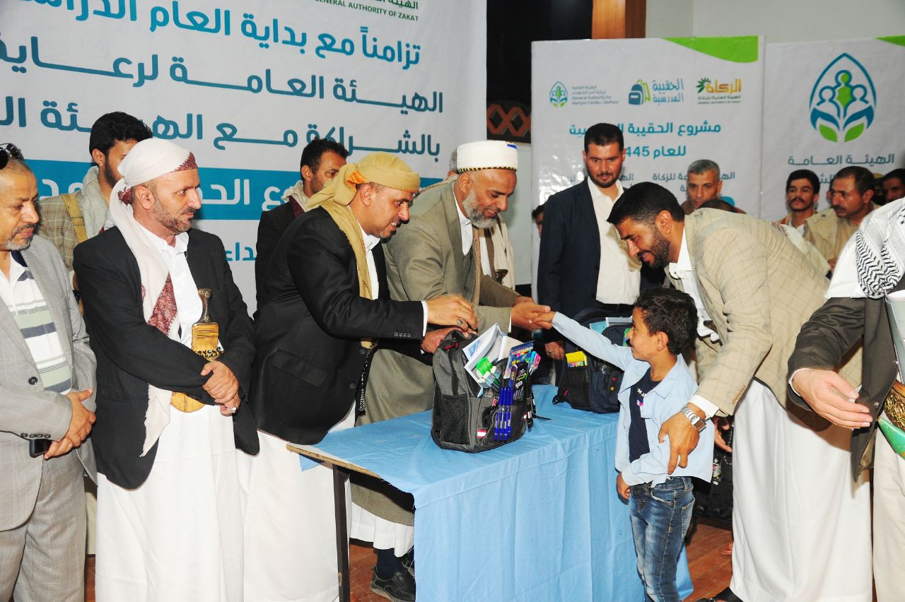 وأوضح الوكيل السقاف أن هيئة الزكاة تدشن مشروع الحقيبة المدرسية لأبناء الشهداء للعام الخامس على التوالي وتتبنى الكثير من المشاريع الخاصة بأسر وأبناء الشهداء والمفقودين باعتبارهم من أولويات اهتمام هيئة الزكاة في مختلف المجالات الصحية والاجتماعية والاقتصادية وغيرها التي تنفذها على مستوى محافظات الجمهورية.