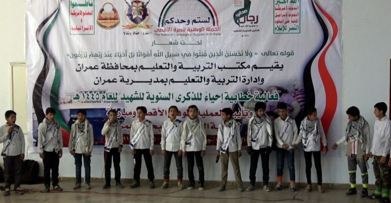دشن مكتب التربية والتعليم بمحافظة عمران وإدارة التربية بمديرية عمران اليوم فعاليات وأنشطة الذكرى السنوية للشهيد للعام 1445هـ تحت شعار قوله تعالي ‘ ولا تحسبن الذين قتلوا في سبيل الله أمواتا بل أحياء عند ربهم يرزقون”