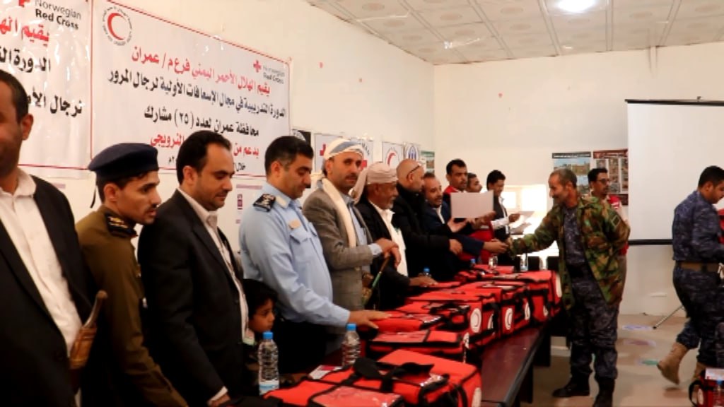 اختتمت بمحافظة عمران دورة تدريبية في مجال الإسعافات الأولية، ينظمها فرع الهلال الأحمر اليمني بالمحافظة.