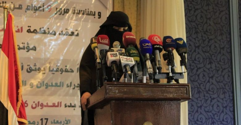 وطالبت الطايفي الأمم المتحدة بإيقاف العدوان والحصار والتعامل مع ملف العدوان على اليمن بشكل جاد وبكل حيادية ومهنية وفقاً للقوانين والاتفاقيات الدولية.